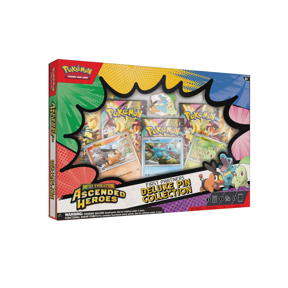 Pokémon TCG: Mega Evolution – Ascended Heroes – Deluxe Pin Collection – First Partners zawiera:
